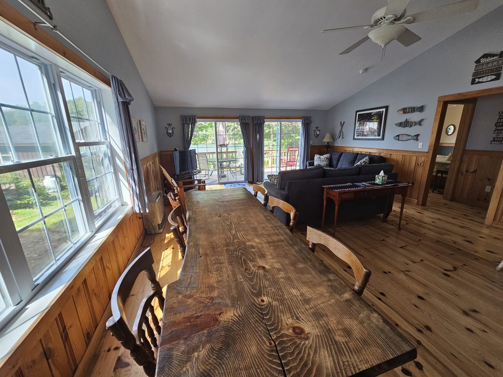 Sitting just up the road from Point, it features an open floor plan with lake views on three sides of the cottage.